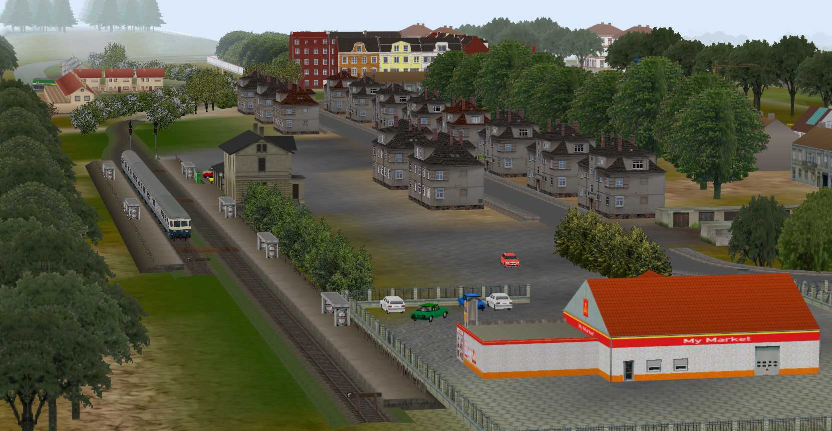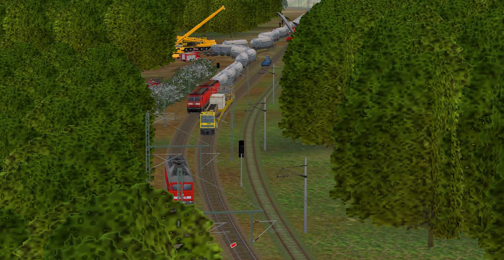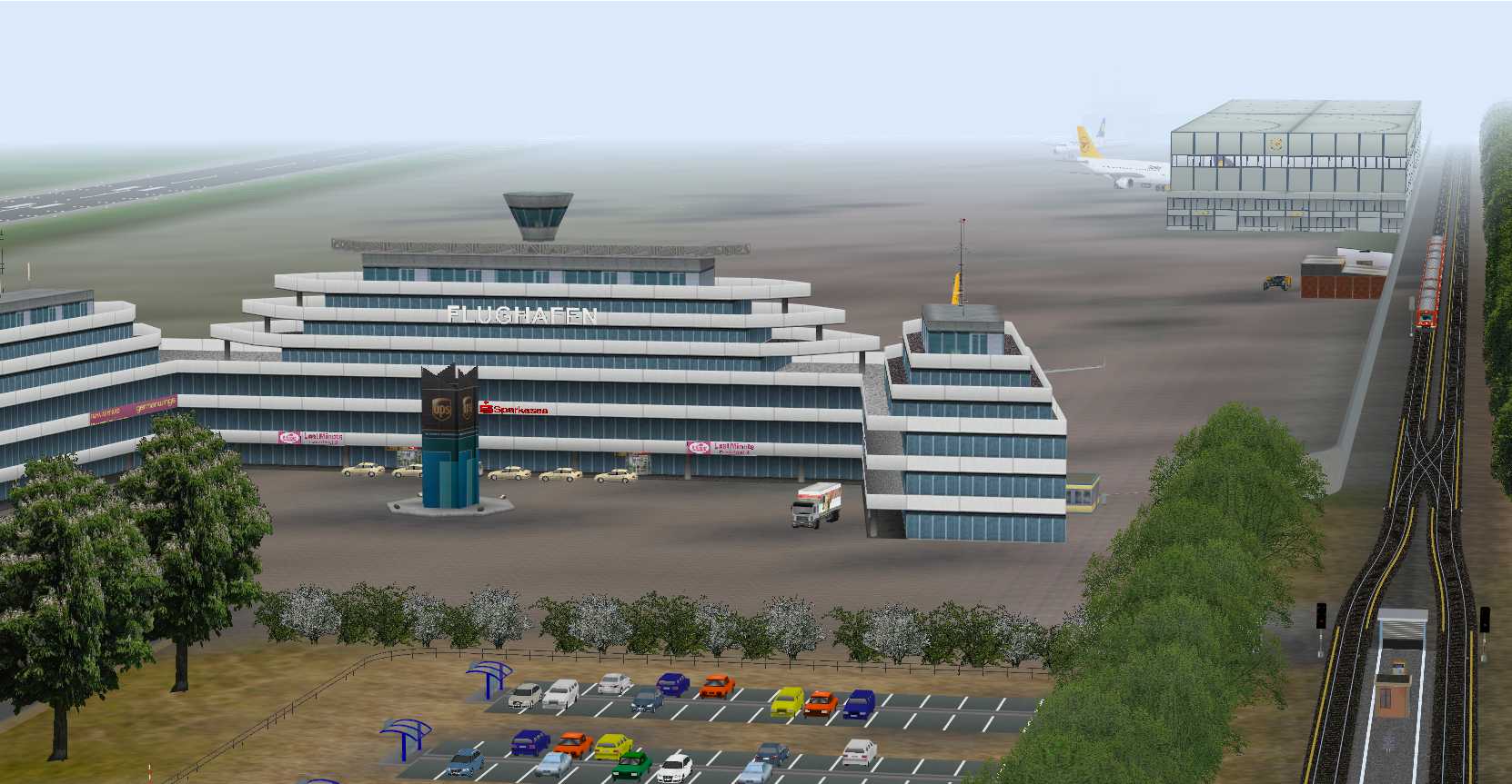 Zu dem Hauptbahnhof gehören noch 3 Gleise für die Umfahrung der Bahnsteige durch Güterzüge und ein kleinerer Rangierbereich.