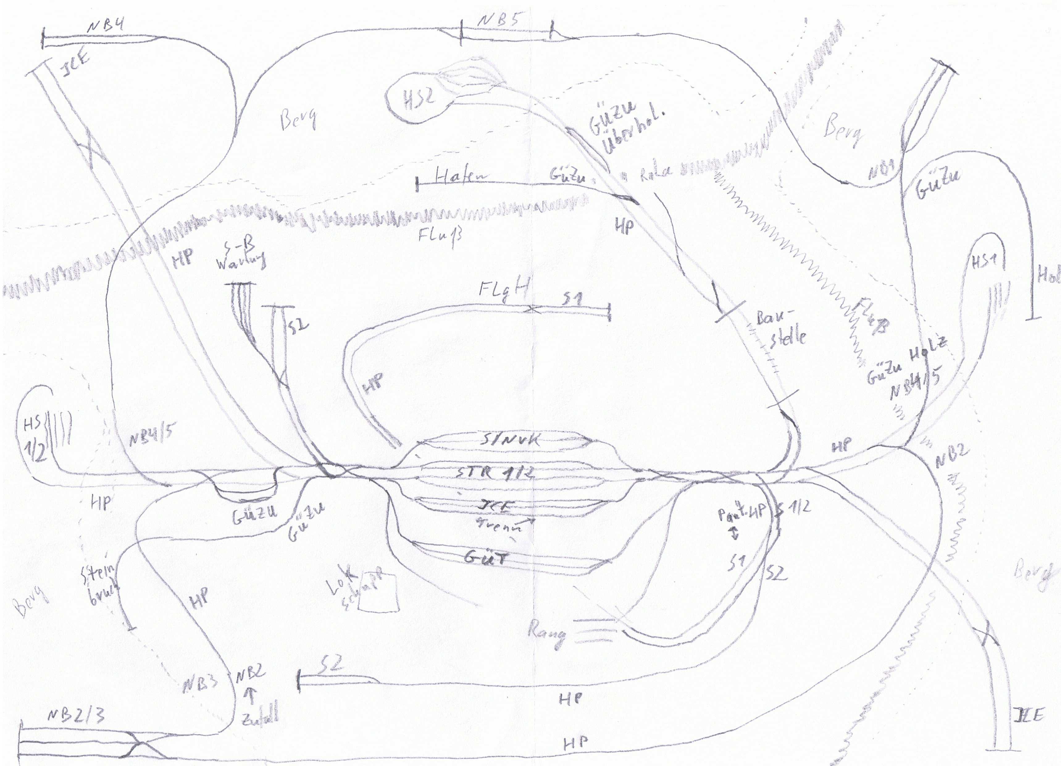 Bei dieser, auch wieder, reinen Phantasieanlage steht im Mittelpunkt ein 12gleisiger Hauptbahnhof.