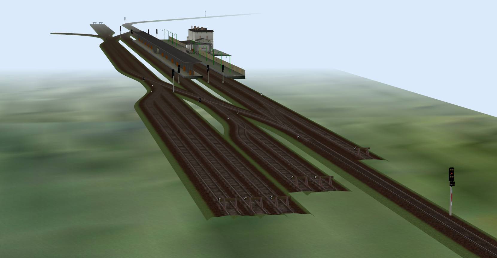 Die Hauptstrecke endet an beiden Enden jeweils in einem 3gleisigen Schattenbahnhof.