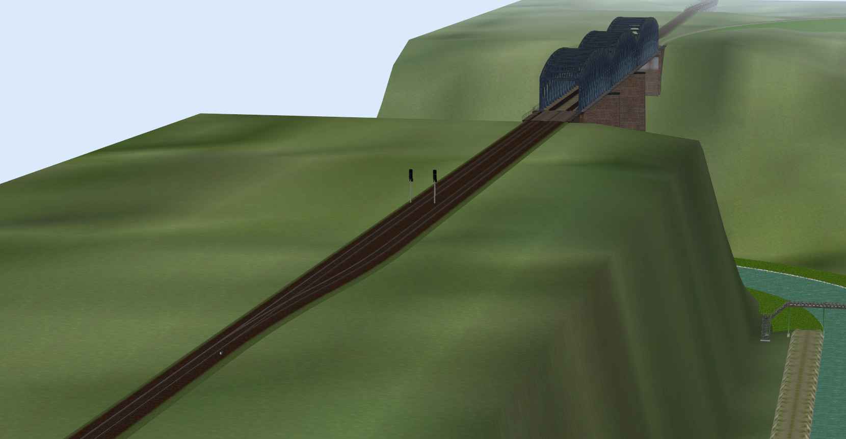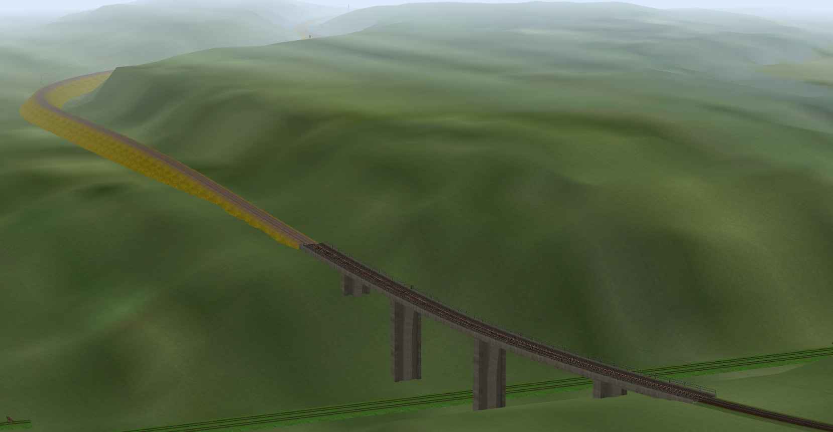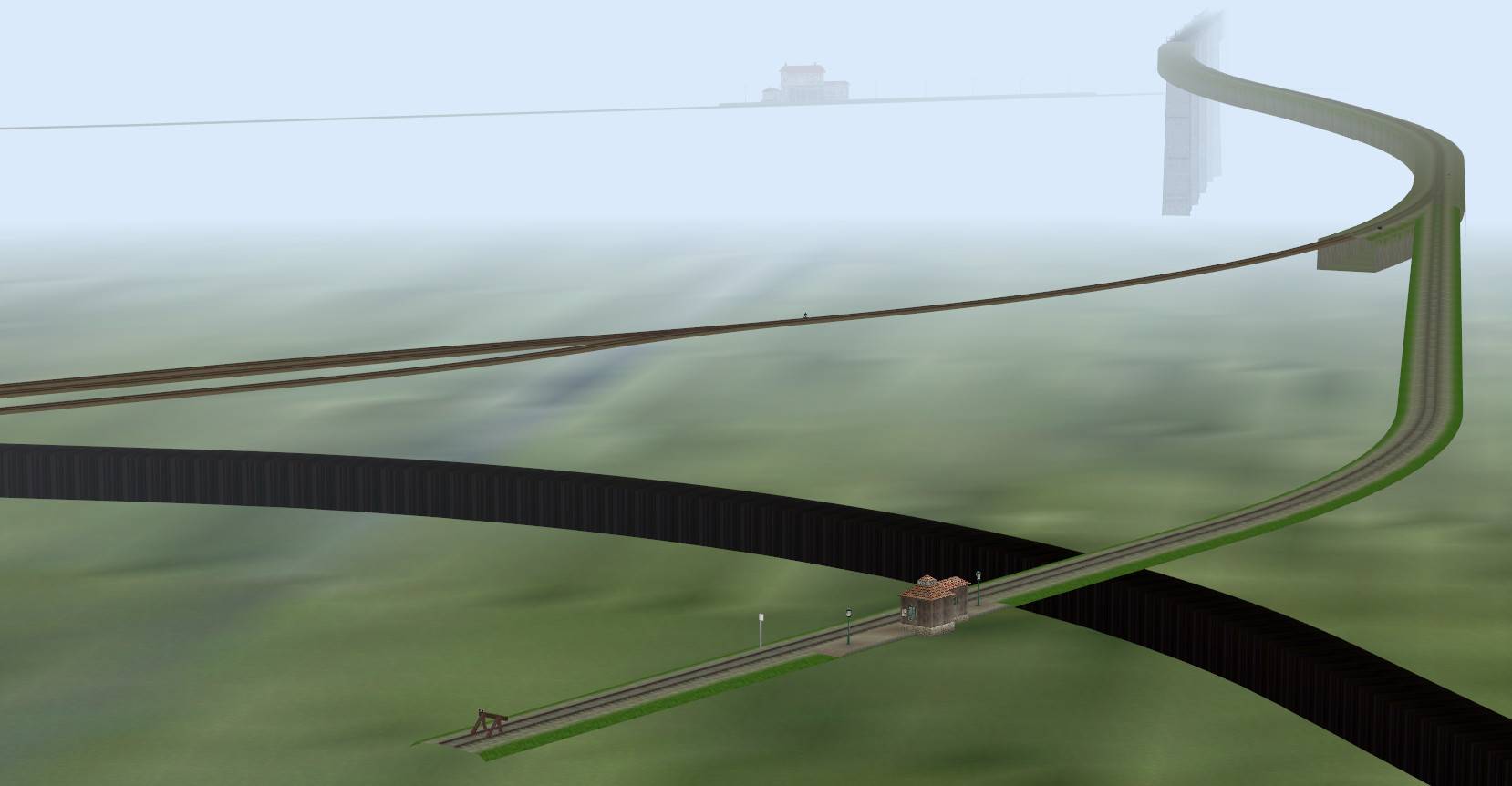 Auf dieser, auch wieder, reinen Phantasieanlage befinden sich zwei Kleinstädte, die durch eine 3gleisige Hauptverkehrsstrecke miteinander verbunden sind.