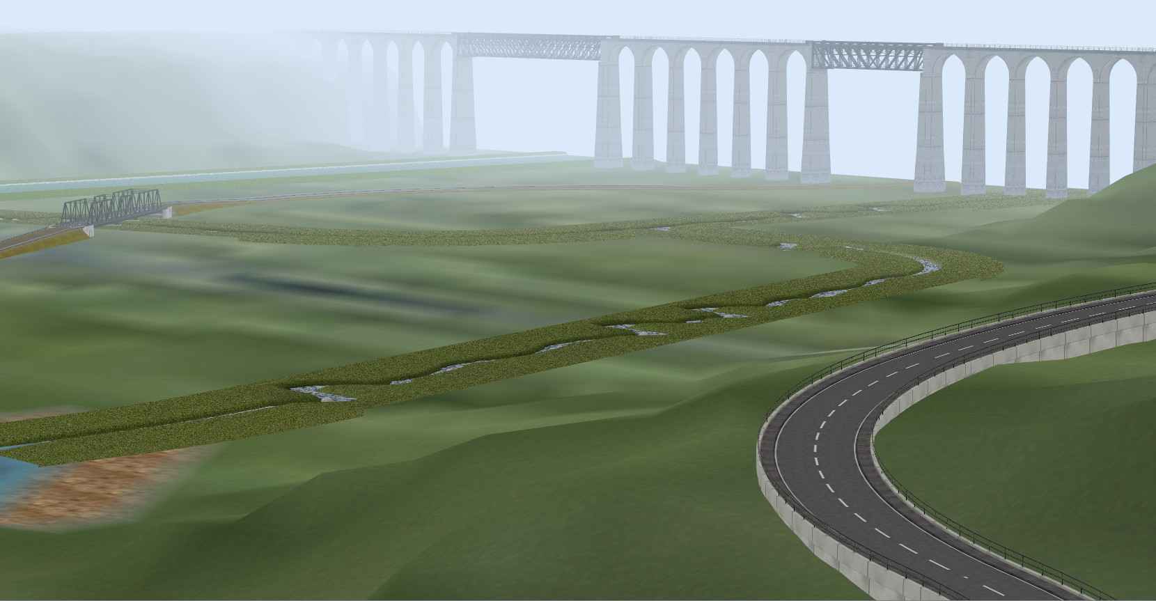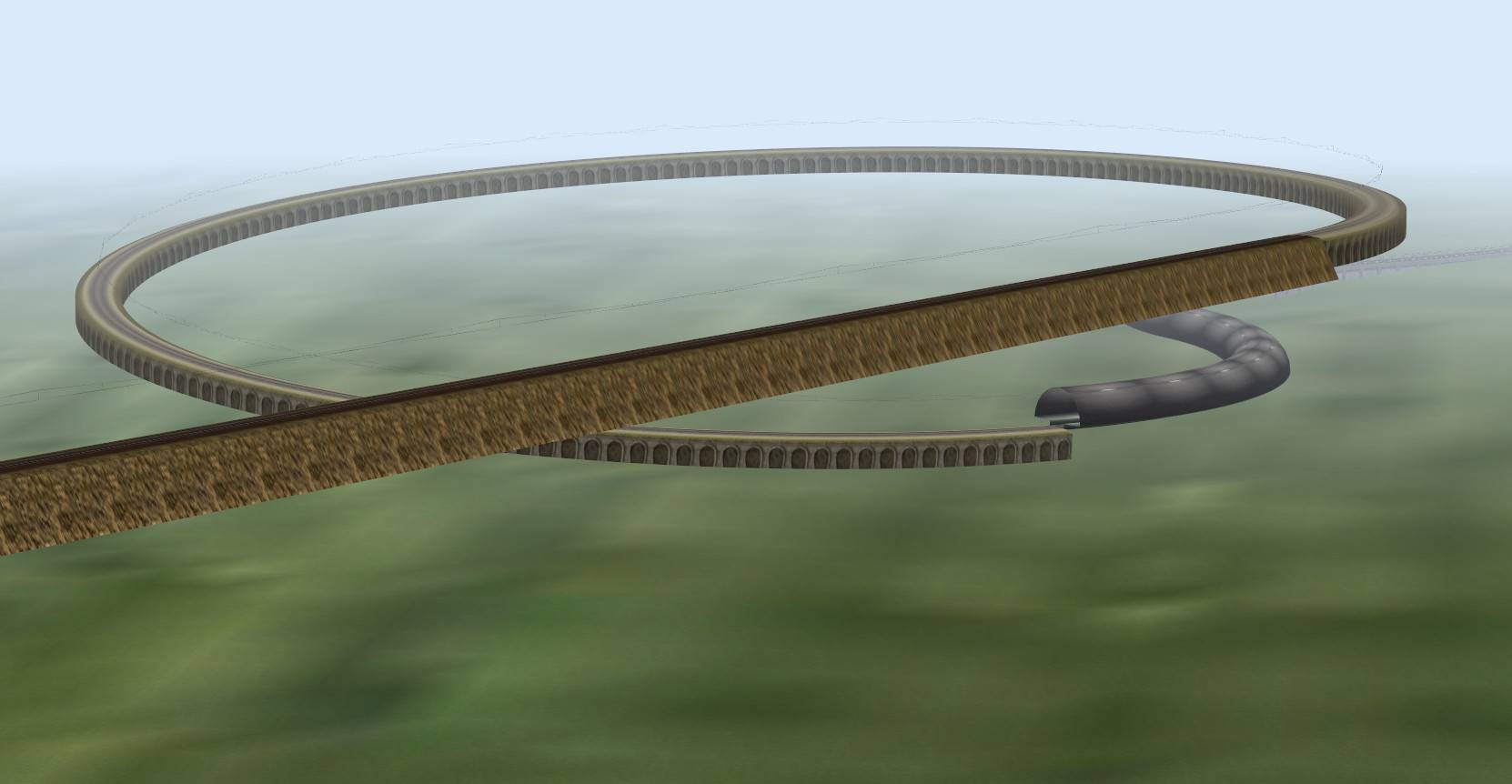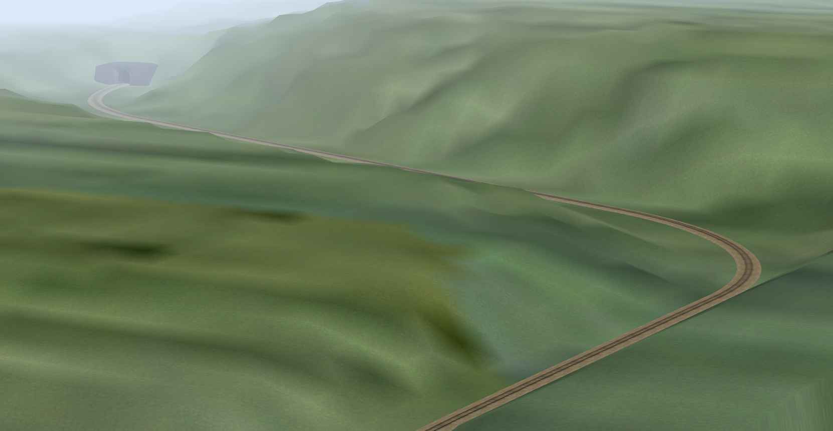 Auf dieser, auch wieder, reinen Phantasieanlage befinden sich zwei Kleinstädte, die durch eine 3gleisige Hauptverkehrsstrecke miteinander verbunden sind.