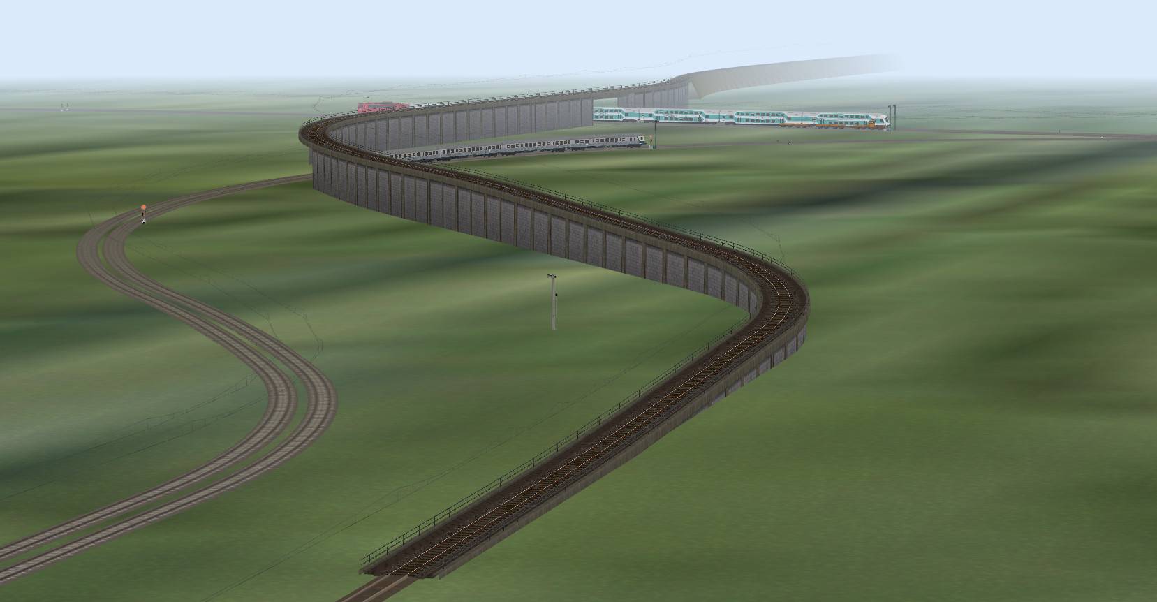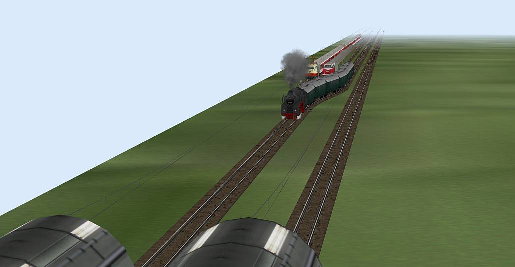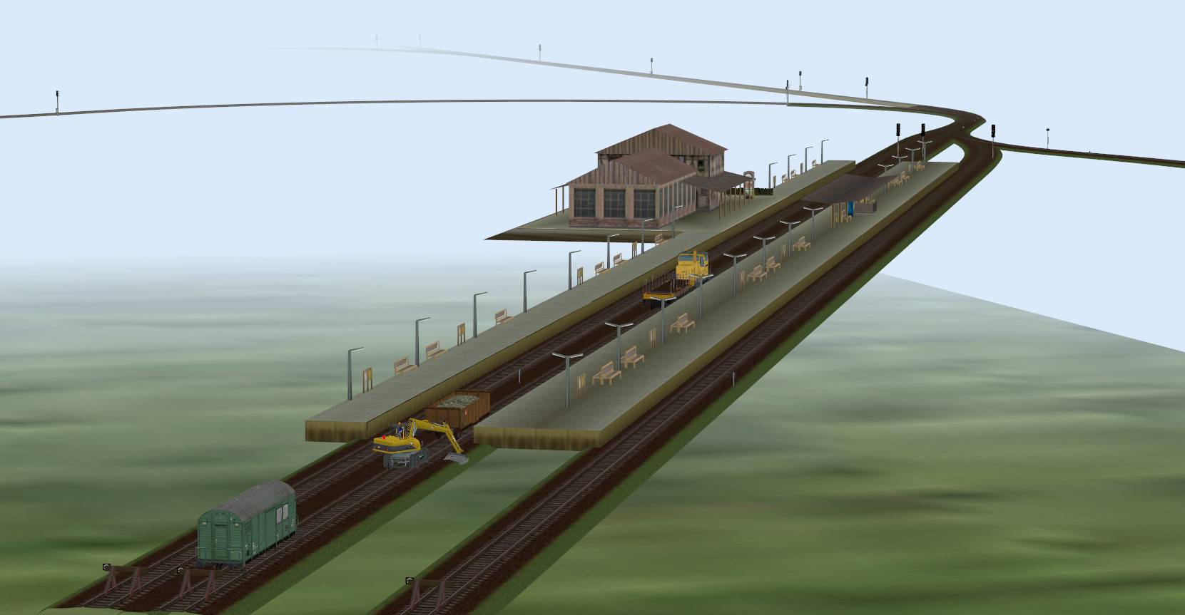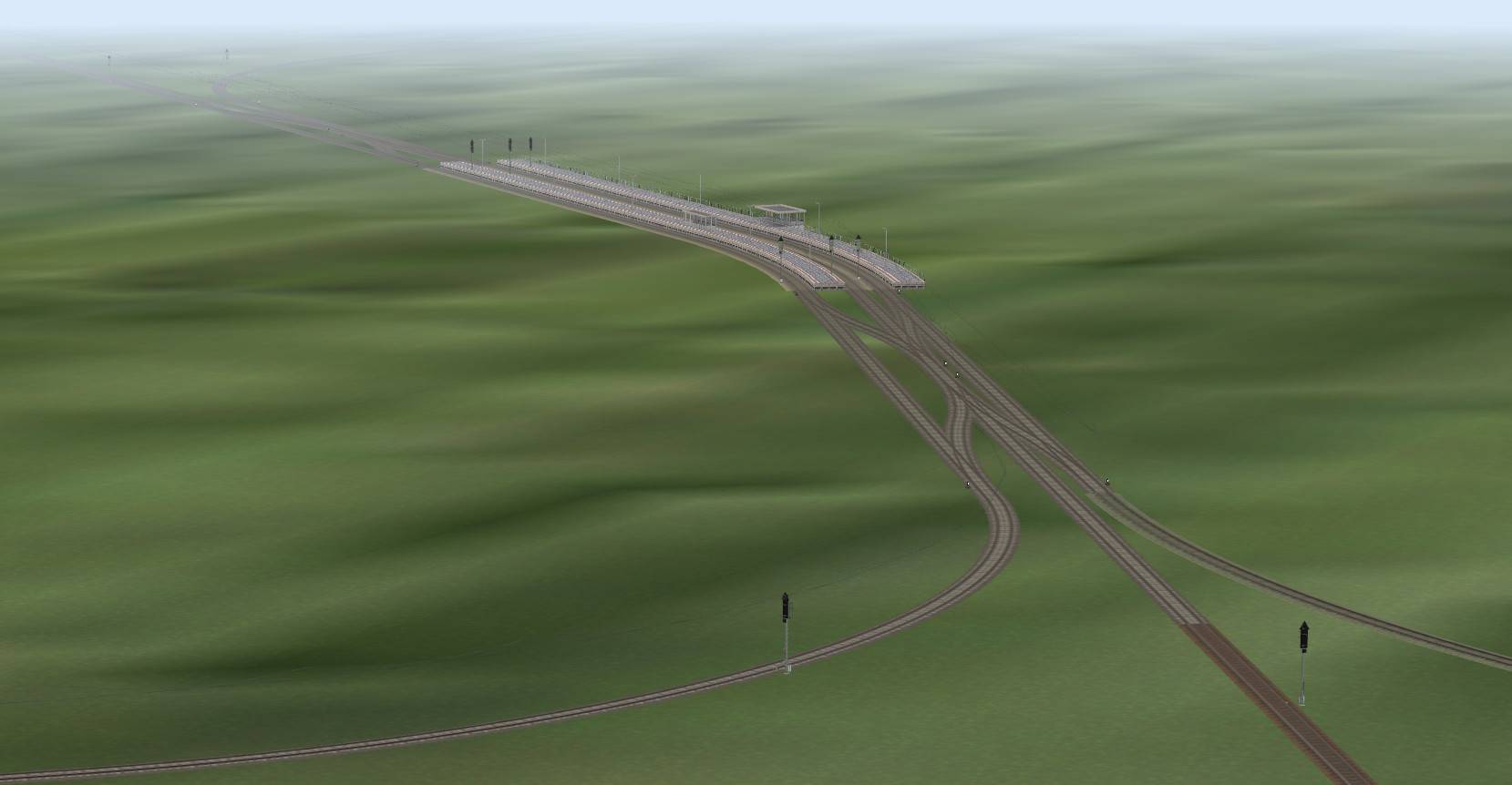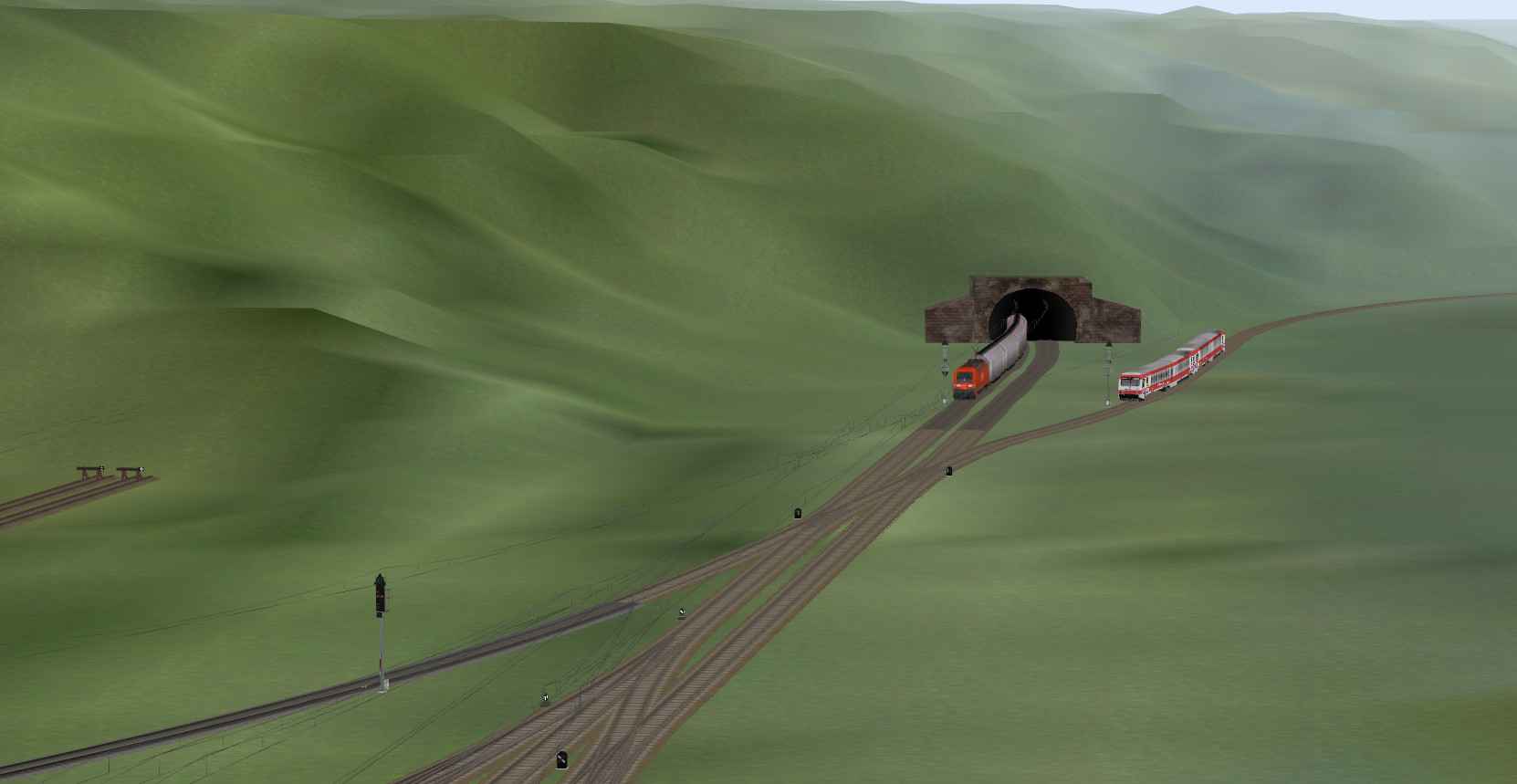 Erstmal verwende ich für den Wendezugbetrieb wieder das Standard-EEP-Verfahren. Ich lasse diesmal die Züge mit höherer Geschwindigkeit in den Signalbereich